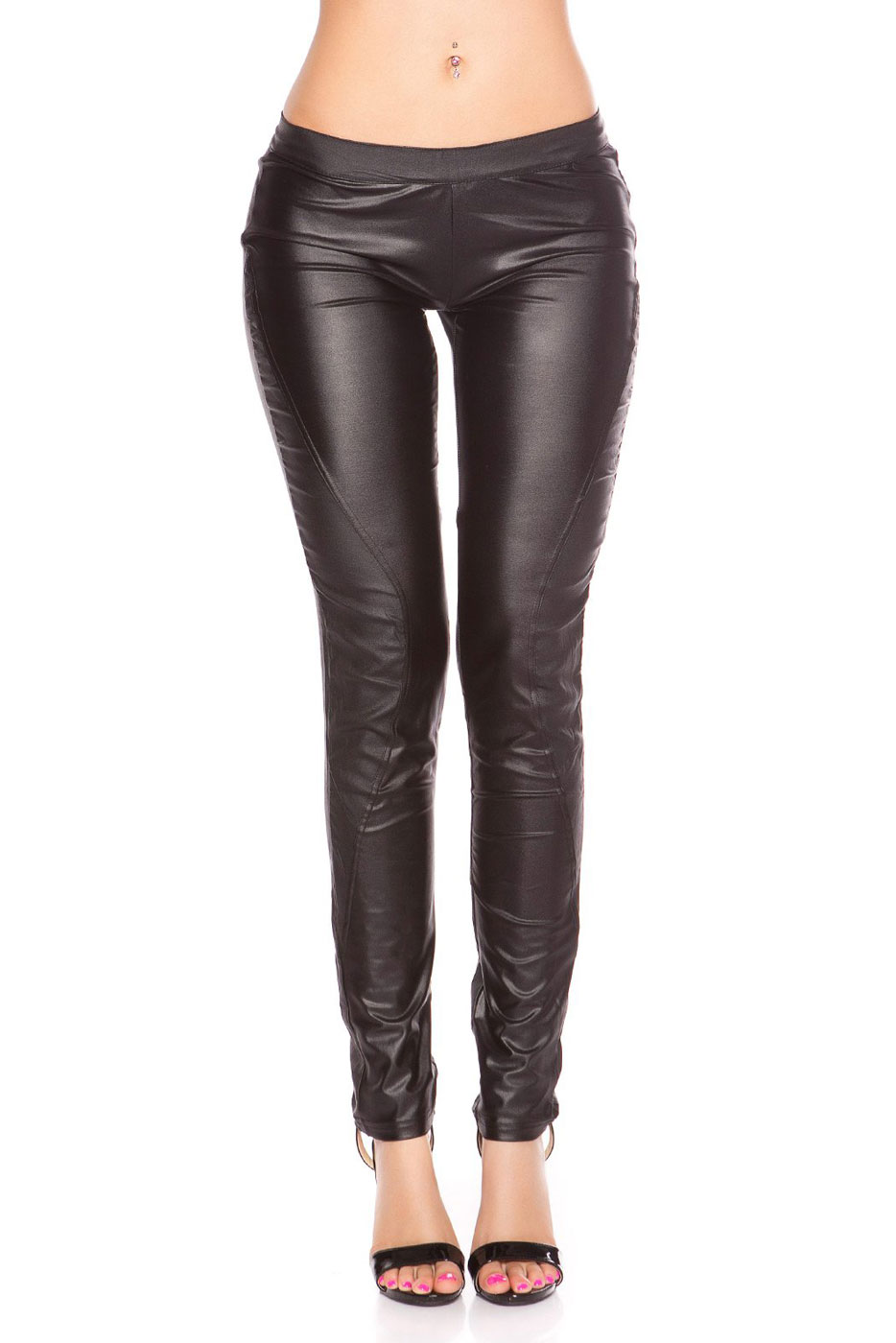 Pantaloni aderenti in morbida similpelle nera con cerniera.