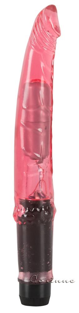 Slender penis-shaped (anal) vibrator with full head and throbbing veins. With multi speed vibrations. Red transparent, easy-glide jelly material. Size: 16 cm, Ø 1.5 - 2 cm. Material: PVC, ABS, free of phthalates according to EU regulation REACH. Please order batteries separately: 1 x AA.