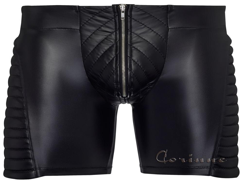 Black pants in a biker style with a padded zip, a stitched pouch and stitched inserts at either side. Made out of light, stretchy material in a beautiful matte look. 90% polyester, 10% elastane.