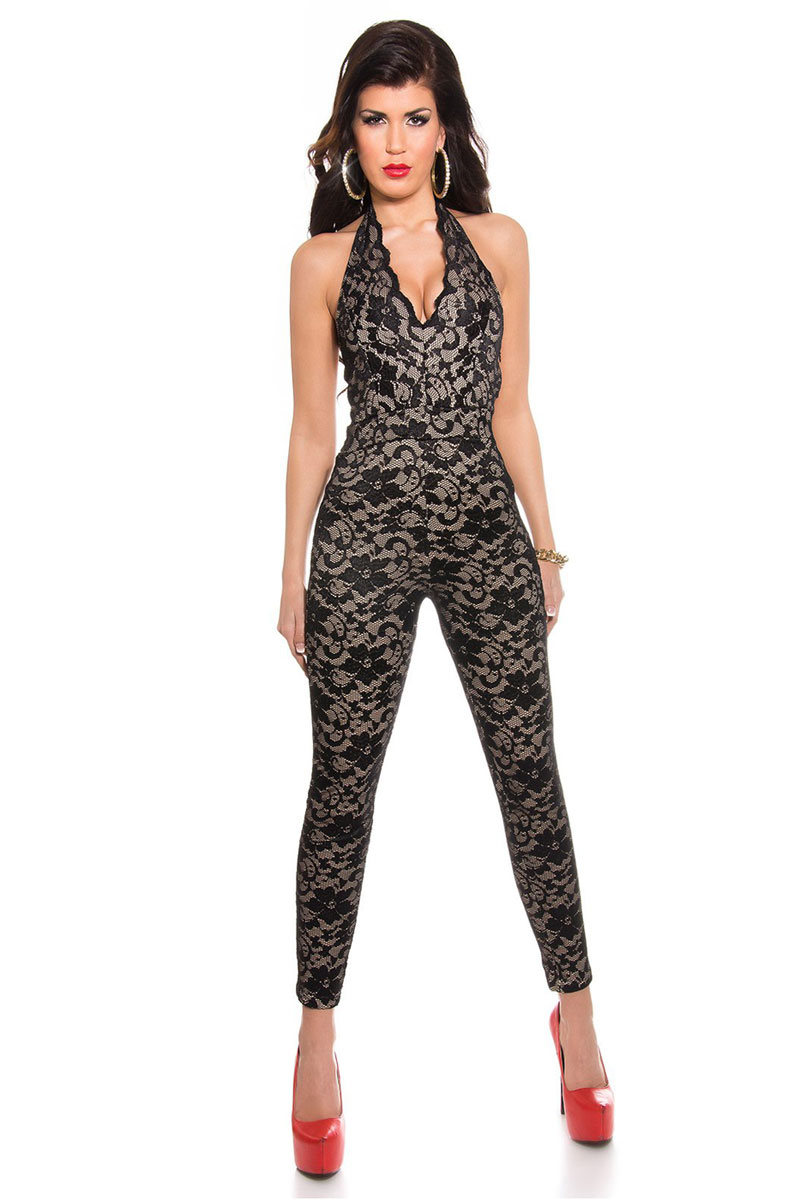 Home Page »» Catalogo »» ABBIGLIAMENTO DONNA »» Tute donna - salopette »» Tuta Intera Nero/Beige con Pizzo e Schiena Scoperta