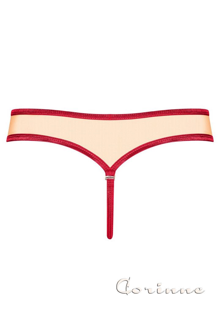 Raffinato e audace, questo modello alterna la trasparenza del tulle color pelle a preziosi dettagli in satin rosso. Il design è curato nei minimi dettagli, dal generoso fiocco con pendente dorato sul davanti alle fasce laterali che slanciano la figura. La particolarità funzionale del gancetto posteriore permette di sganciare il cavallo, aggiungendo un tocco di malizia a un capo dallo stile squisitamente femminile. Realizzato in tessuto morbido ed altamente elasticizzato, si adatta alle forme del corpo garantendo libertà di movimento ed una sensazione piacevole sulla pelle.