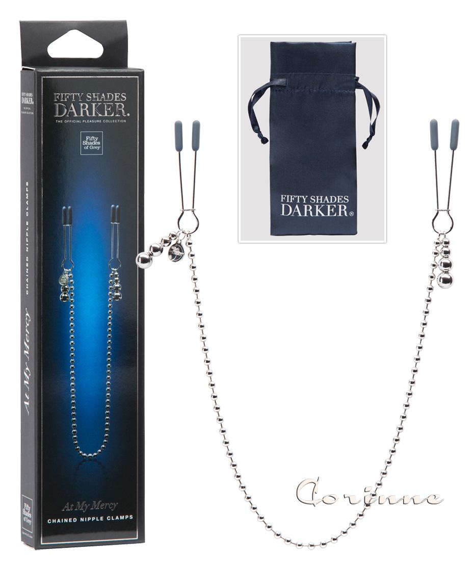Boob chain with beads at each end. The ends of the clamps are covered in black silicone. Silver-coloured. Includes a satin storage bag. Length: 37 cm. Material: nickel-free metal, silicone, phthalate-free according to EU Regulation REACH.