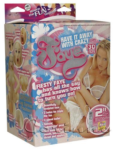 Life-size, inflatable love doll with three pleasure holes (vaginal, oral, anal). Formed face and synthetic blond hair. Vibro bullet with 3 levels vibration included.