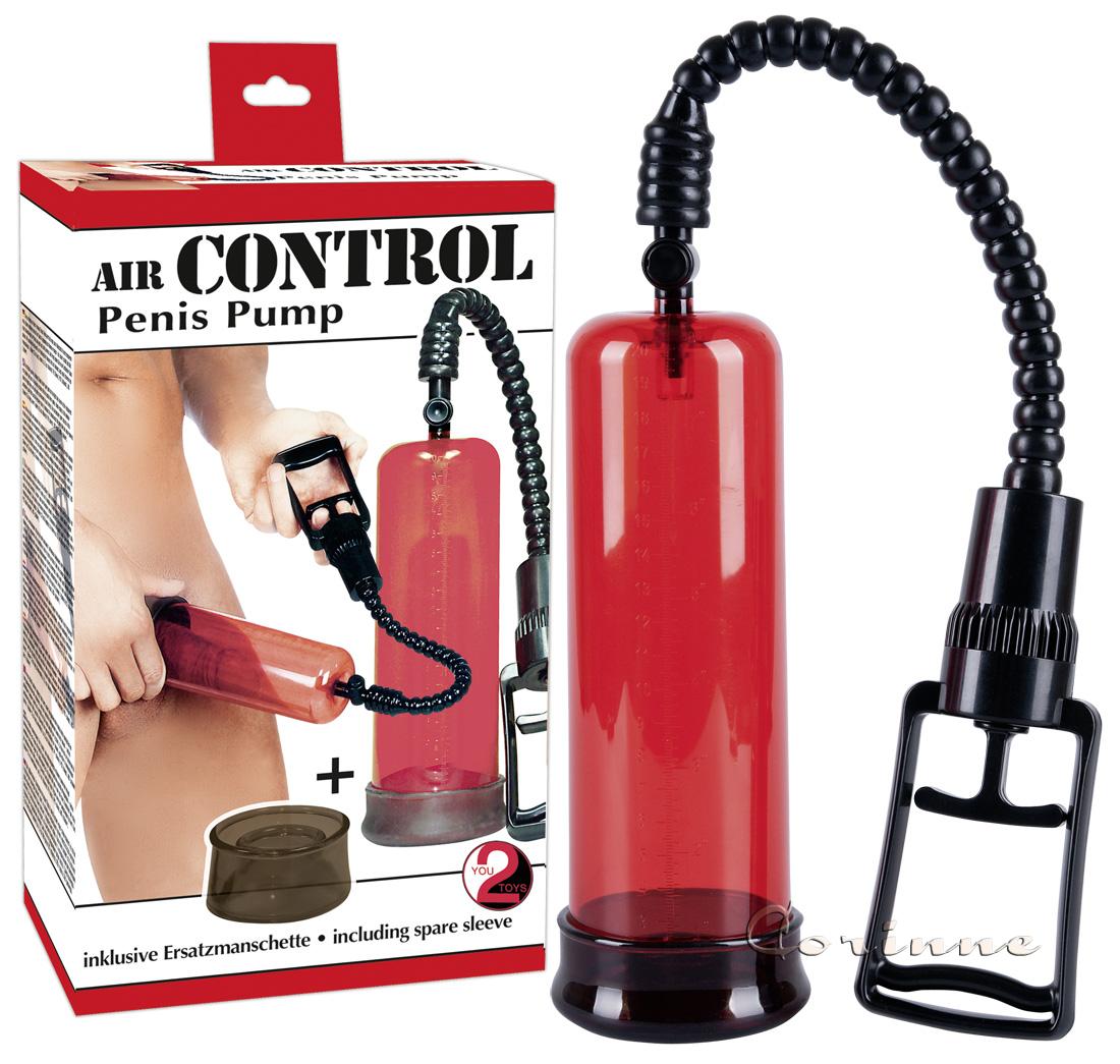 Easy-handling one-hand pressure pump. Red/transparent cylinder with measure scale. Length cylinder 22 cm, inner Ø 6.5 cm. Free of phthalates according to EU regulation REACH.