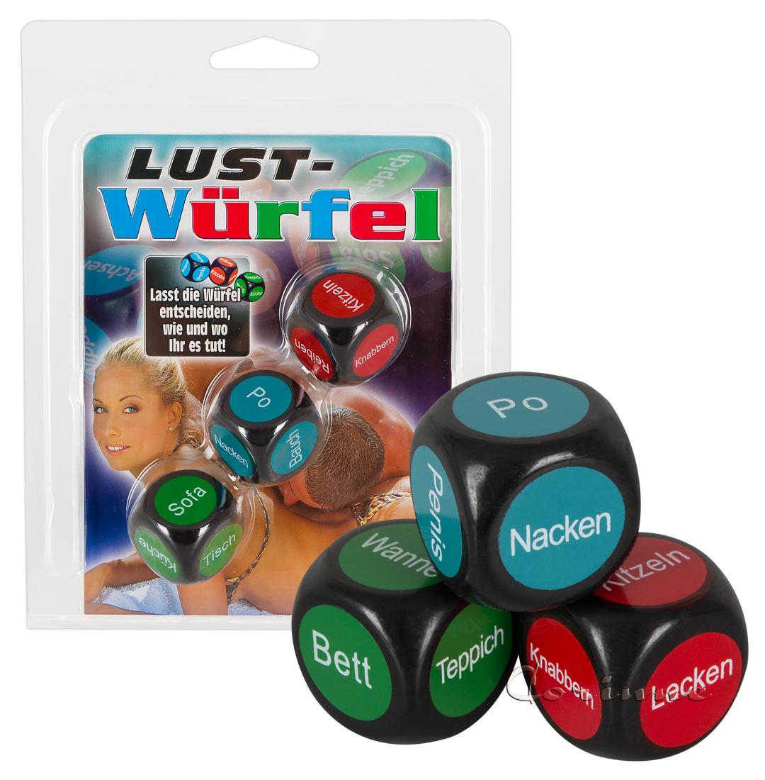 Let the dice decide where to have sex next! Just throw the three dice: the red one tells you what to do, the blue one decides on the part of the body and the green dice tells you a certain location. Size: 2.4 cm, 3 dice in one set.