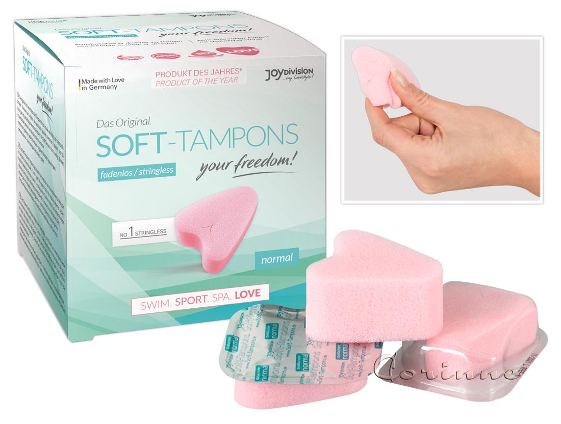 Dry threadless soft tampons for optimal security on critical days. For sauna, sport, swimming, and hygienic intercourse. 3 piece.