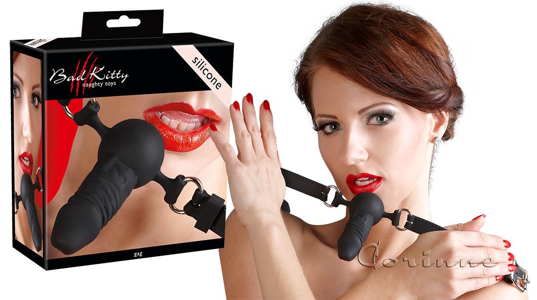 Natural penis-shaped gag ball on adjustable straps. Total length penis 9.5 cm, Ø 3 cm.