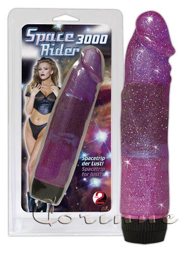 Slim vibrator made of slippery transparent purple jelly with glittery particles indulges with its silent multi-speed vibrations. Size: 18 cm, Ø 3.5 cm. Material: PVC, ABS, phthalate-free according to EU Regulation REACH. Please order batteries separately: 2 x AA.