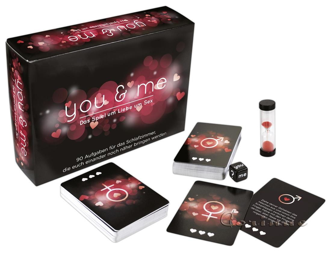 Couples game with 90 erotic ideas, suggestions and activities. Contents:90 task cards plus 8 special cards like 2 jokers, 1 dice, 1 hourglass. German version.