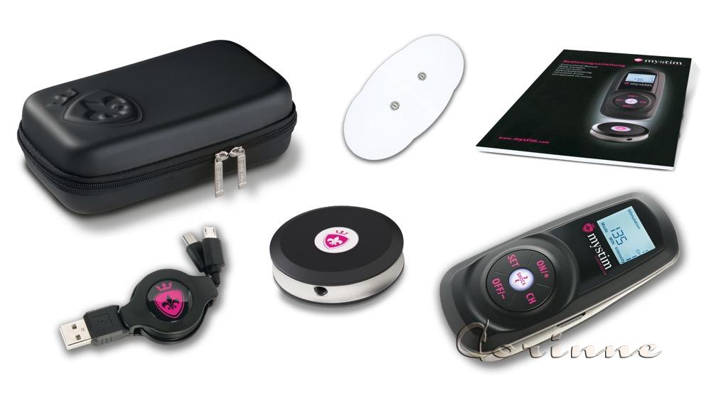 The Mystim Cluster Buster is amazing: the electro-sex set is made up of a remote control and a remote-controlled receiver and can control an unlimited amount of toys at the same time.- Compatible with all mystim electro toys- An unlimited amount of toys can be controlled separately - 10 intensity levels- 12 stimulation programmes- 5 training programmes (e.g. for the pelvic floor muscles)- High-quality lithium-ion battery Up to 8 Mystim toys can be controlled at the same time with the included receiver (Sub). The receiver can control the different programmes and intensities. The amount of toys that can be controlled simultaneously increases with every Sub (please order separately). Therefore in theory, an unlimited amount of devices can be connected at the same time. There are 10 intensity levels, 12 stimulation programmes and 5 special training programmes (e.g. for the pelvic floor muscles) in total. The clear display and the buttons are lit up and this means that they can still be seen in a darker room. The mystim Cluster Buster comes in a beautiful storage box. A remote control, a receiver, a bi-polar electrode (self-adhesive) and an instruction manual are included in the delivery. The lithium-ion battery can be recharged with the included cable.