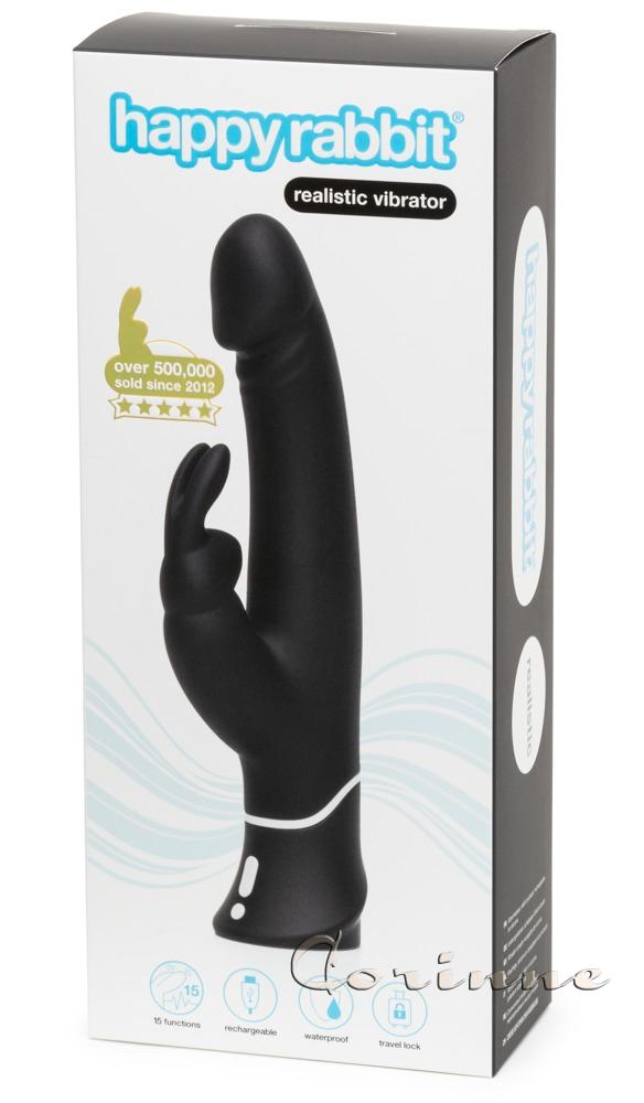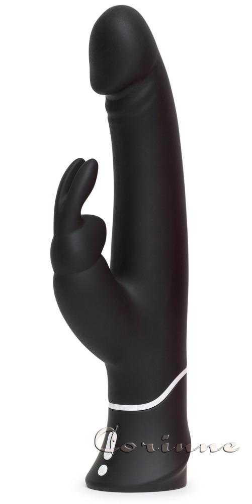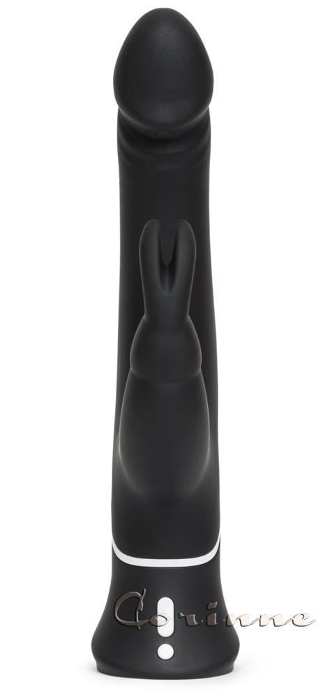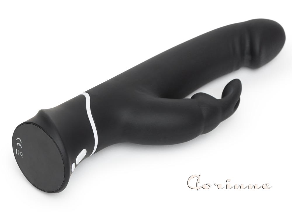 Double vibrator with a rabbit-shaped clitoral stimulator that has flexible ears. With anal beads. 3 motors – one in the shaft, one in the clitoral stimulator and one in the anal beads. 12 vibration modes in the shaft. 9 vibration modes in the clitoral stimulator and anal beads – they have to be used together. With a travel lock. It can be recharged with the included USB cable. Black. Complete length 24.4 cm, Ø 3.3–3.7 cm; anal beads 11.5 cm long, Ø max. 3.8 cm. Silicone with a PU coating, phthalate-free according to EU Regulation REACH.