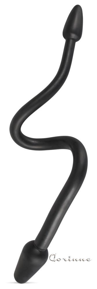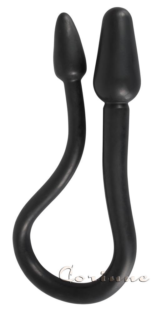 Curved, smooth double dildo made out of realistic Nature Skin. Complete length 78 cm, Ø 2-5.1 cm. Black. TPE, phthalate-free according to EU Regulation REACH.