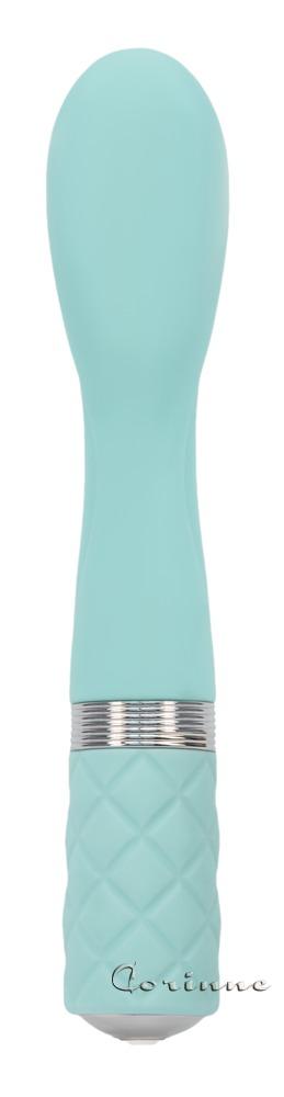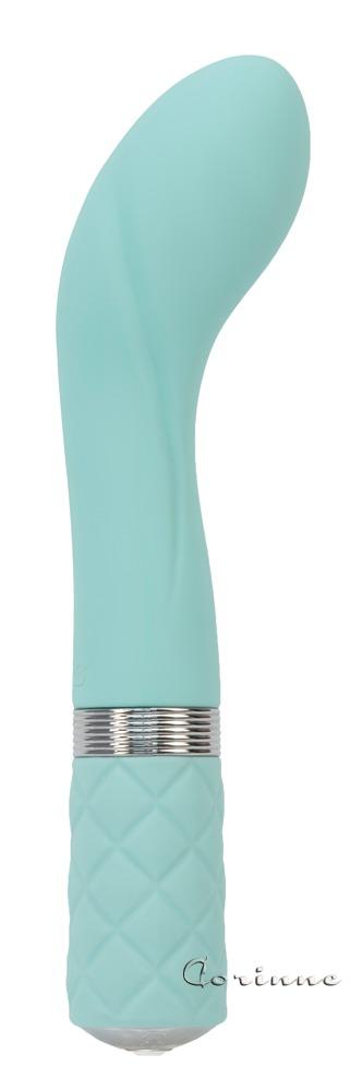 Turquoise G-spot vibrator with a curved tip for effective G-spot stimulation.With a powerful motor that provides deep multi-speed vibrations at the push of a button (press the button down for longer). The button is a real Swarovski stone. With a Quick-Off function that turns the vibrator off straight away. Travel lock. It can be recharged with the included USB cable.Complete length 20 cm, Ø 3.8 cm.Silicone, phthalate-free according to EU Regulation REACH.